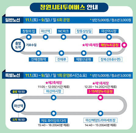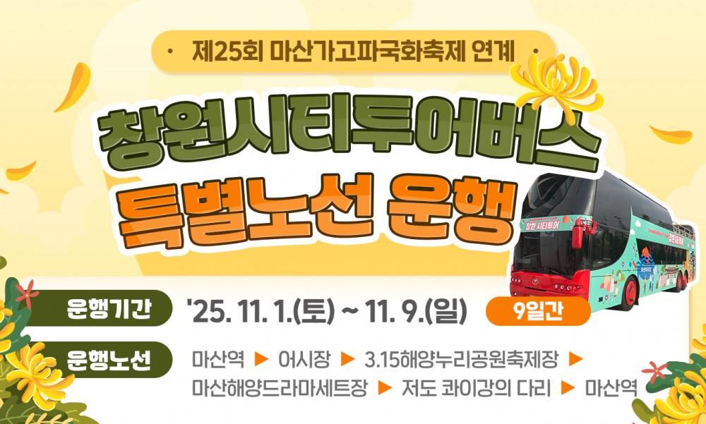 제 25회 마산가고파국화축제 연계 창원시티투어버스 특별노선 운행 안내